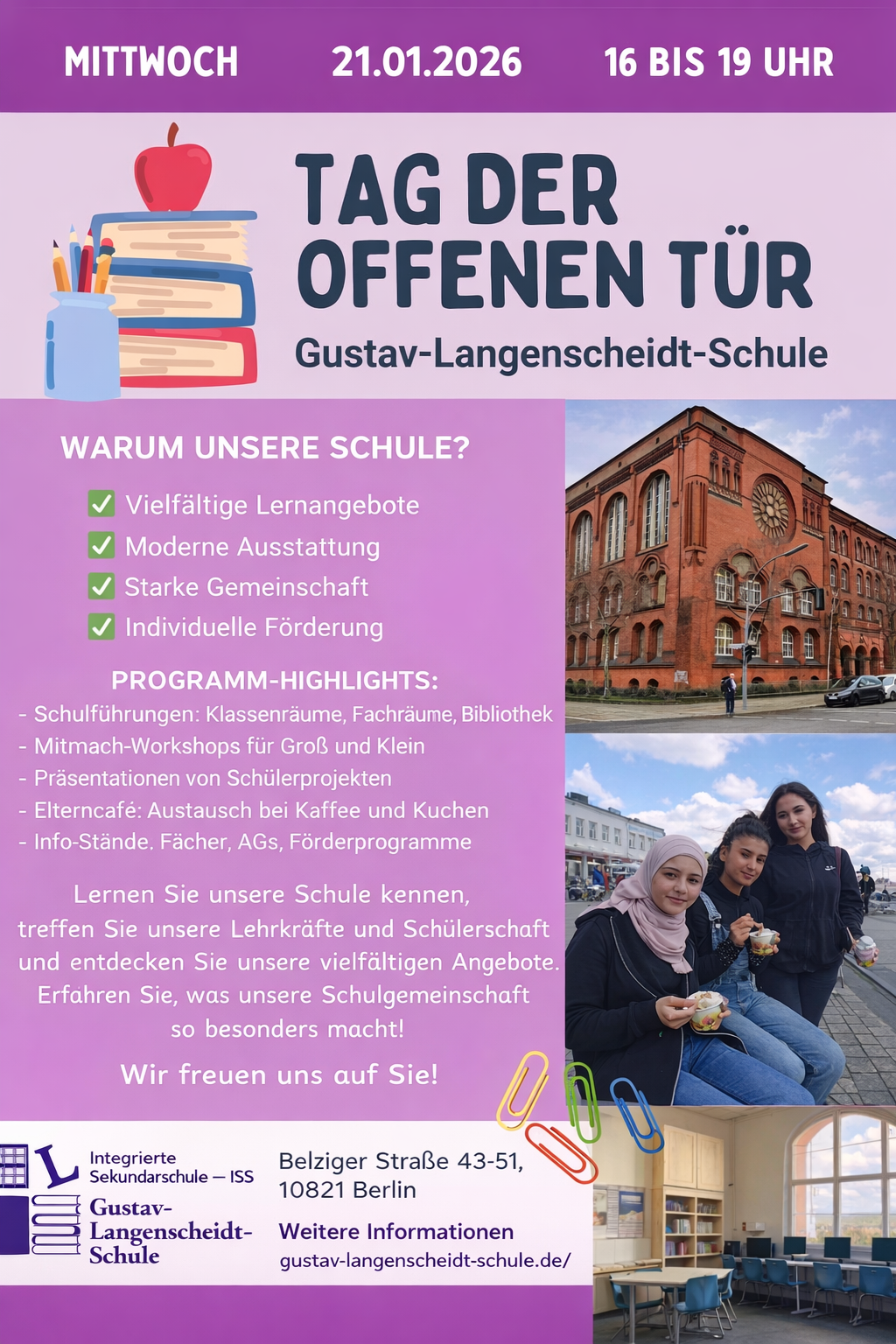 Der Wechsel an eine neue Schule ist ein wichtiger Schritt. An der Gustav-Langenscheidt-Schule legen wir großen Wert auf Vielfalt, Offenheit und ein respektvolles Miteinander. Jedes...